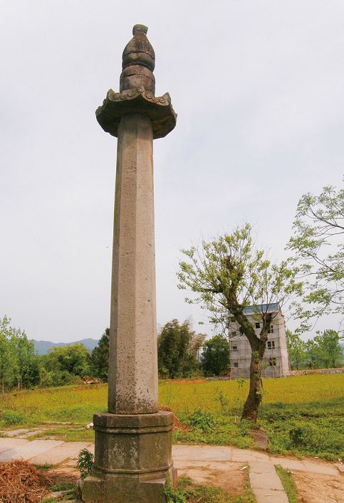 桥头耸立高6米左右的清代佛教经幢。经幢星八面棱柱体,圆形葫芦顶柱头,长方形柱根。楷体阴刻如来吉祥七宝名号:“南无多宝如来”等,柱顶刻有莲花瓣纹饰,雕饰工艺精湛,且保存完整。